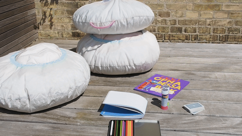 To everyone's surprise the airbags are pastel colored with colorful emboidery when they emerge from the steering wheel. Airbag as a product is extremely strong and robust, ideal for the children's room, outdoor use, the yoga studio or the living room.