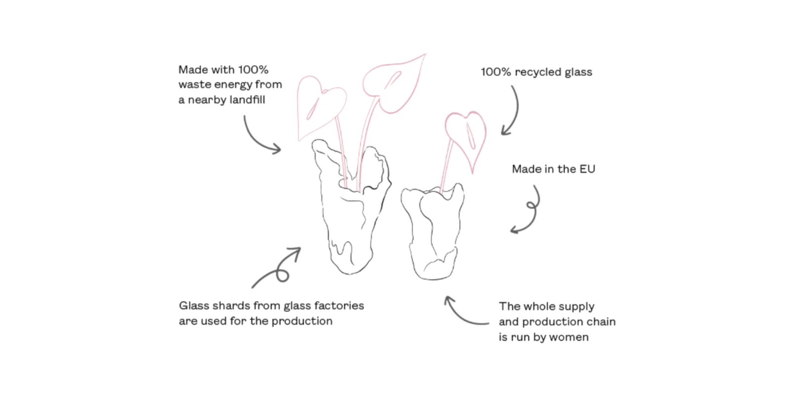 100% recycled glass from high quality glass productions in Sweden.