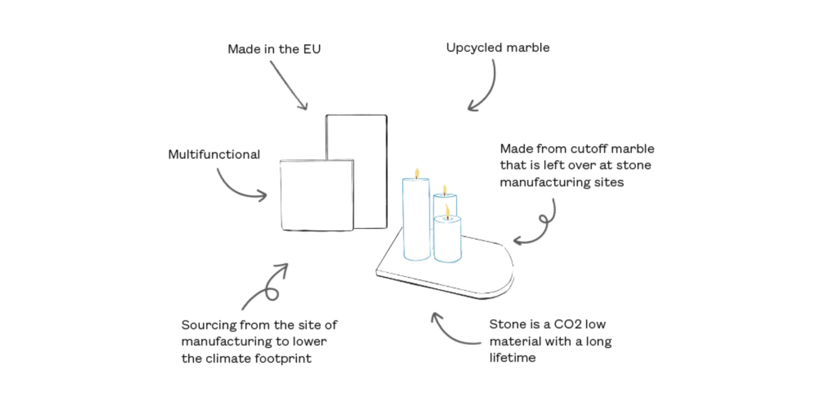 Designed by FÓLK with sustainability in mind - each unique piece showcases the raw elegance of upcycled marble, blending decor and function.