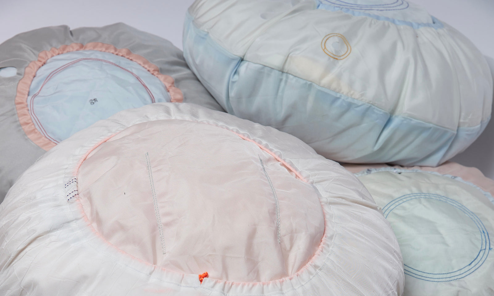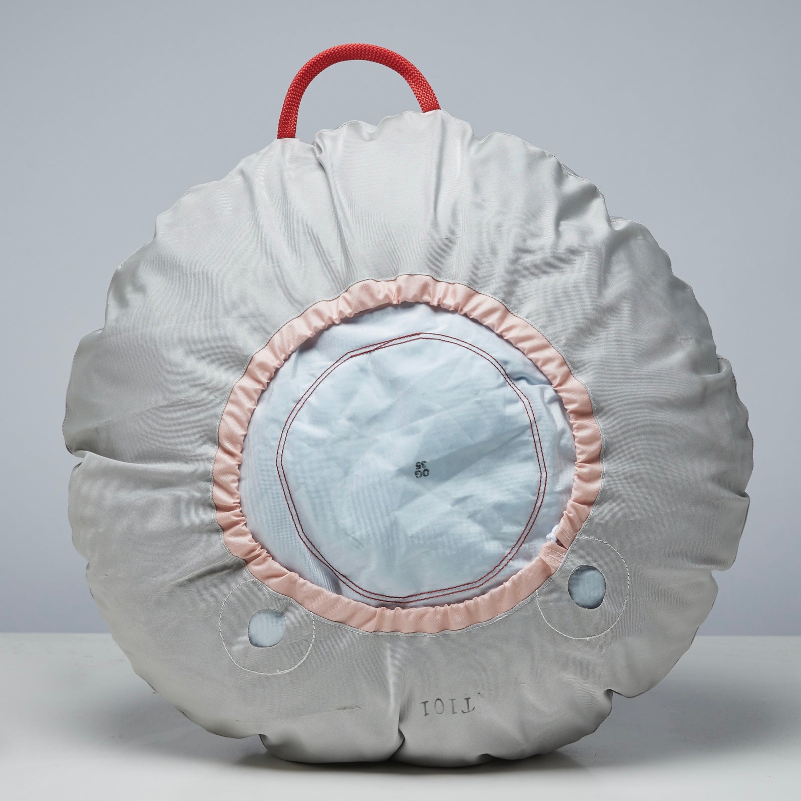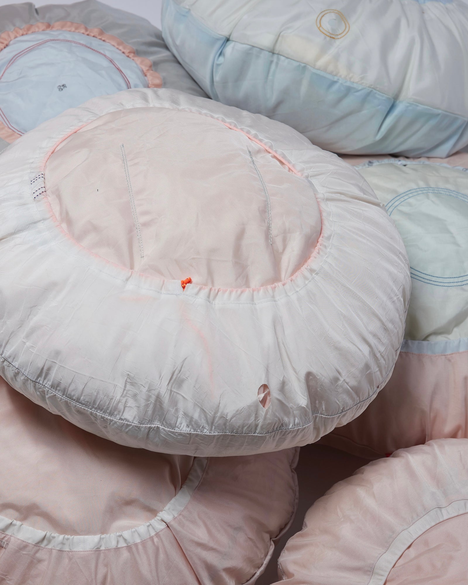 To everyone's surprise the airbags are pastel colored with colorful emboidery when they emerge from the steering wheel. The Airbag as a product is extremely strong and robust, ideal for the children's room, outdoor use, the yoga studio or the living room.