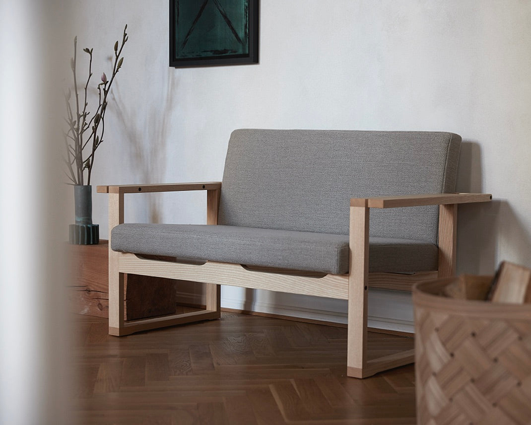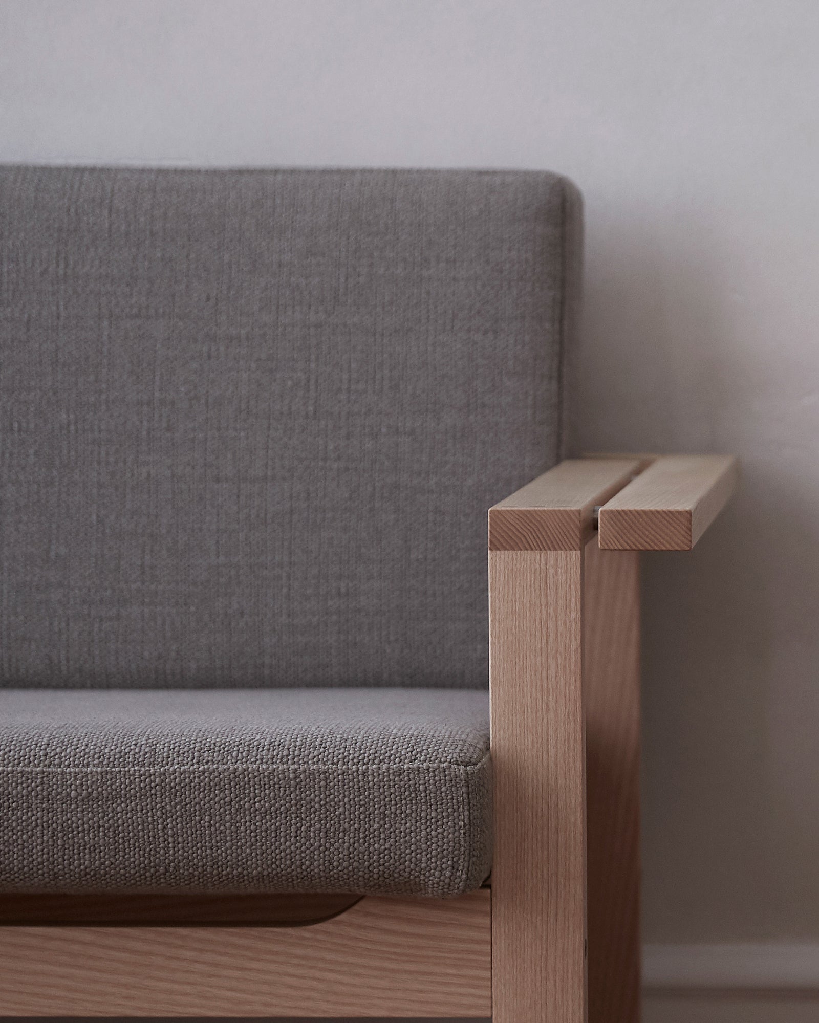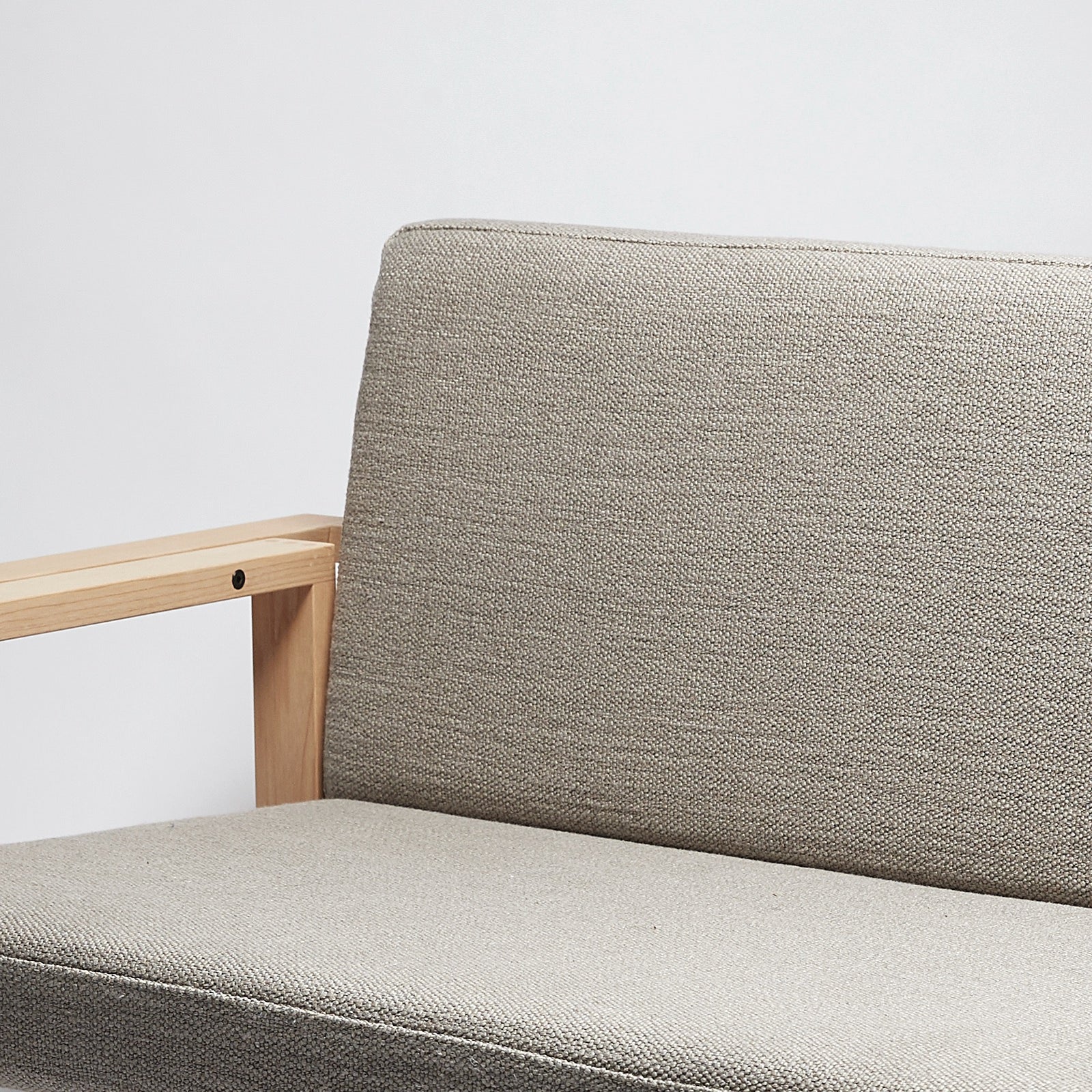 The wooden frame of the sofa and chair is produced from FSC certified ash and oak wood by a skilled cabinetmaker. Choose between Ash, Oak and Black tinted Oak.