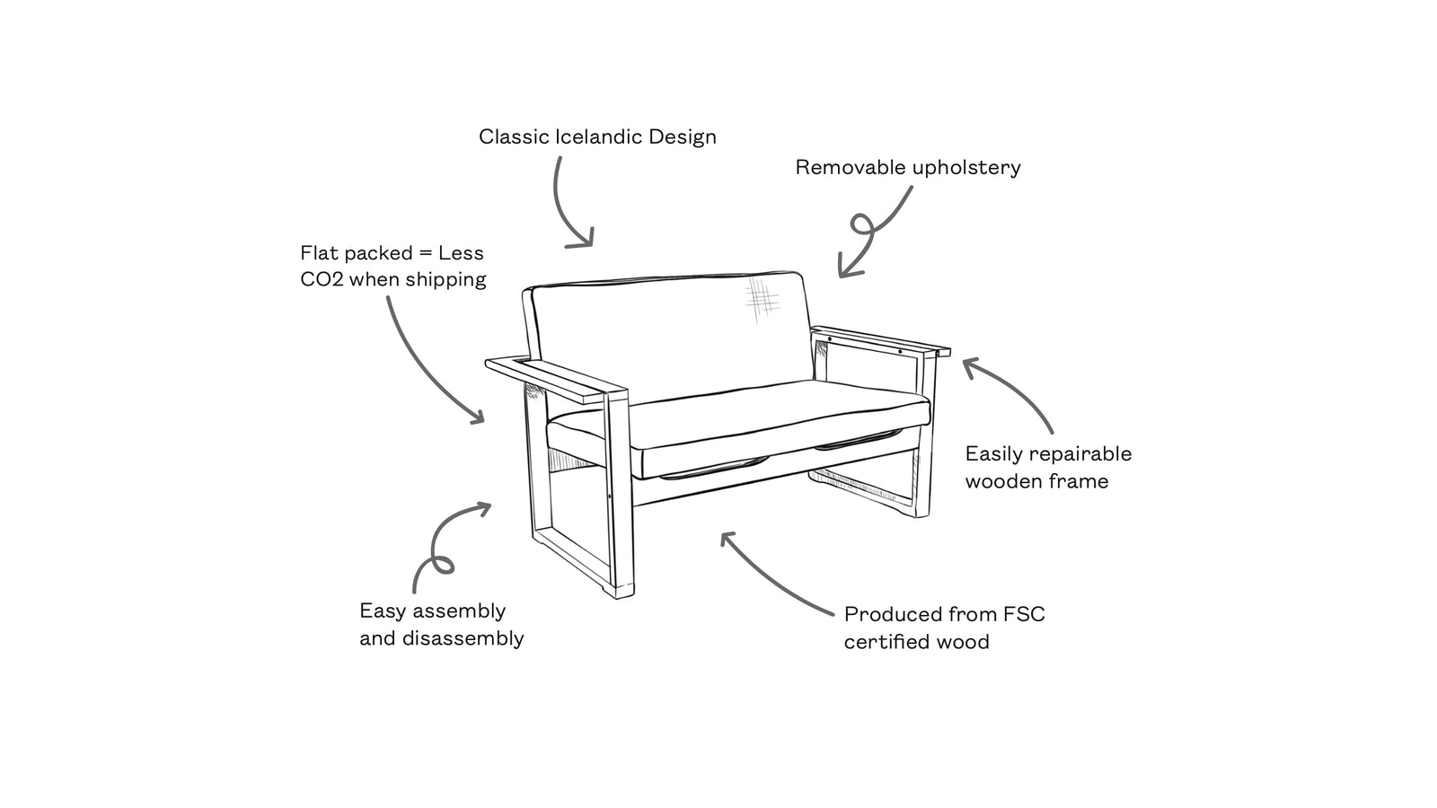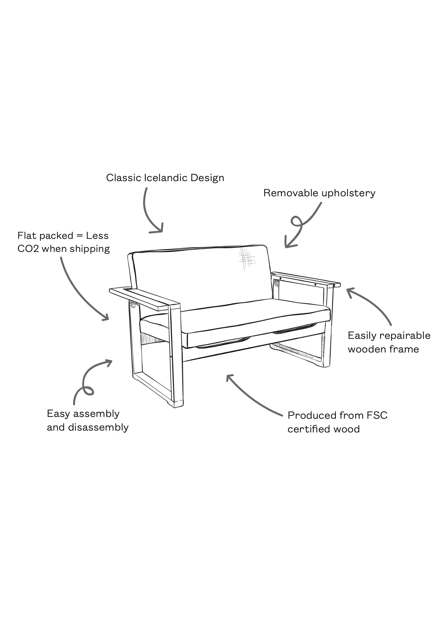 The frame is flatpacked, along with the rest of the sofa, which reduces the CO2 footprint of the transport.