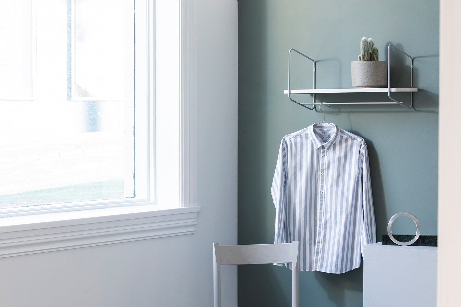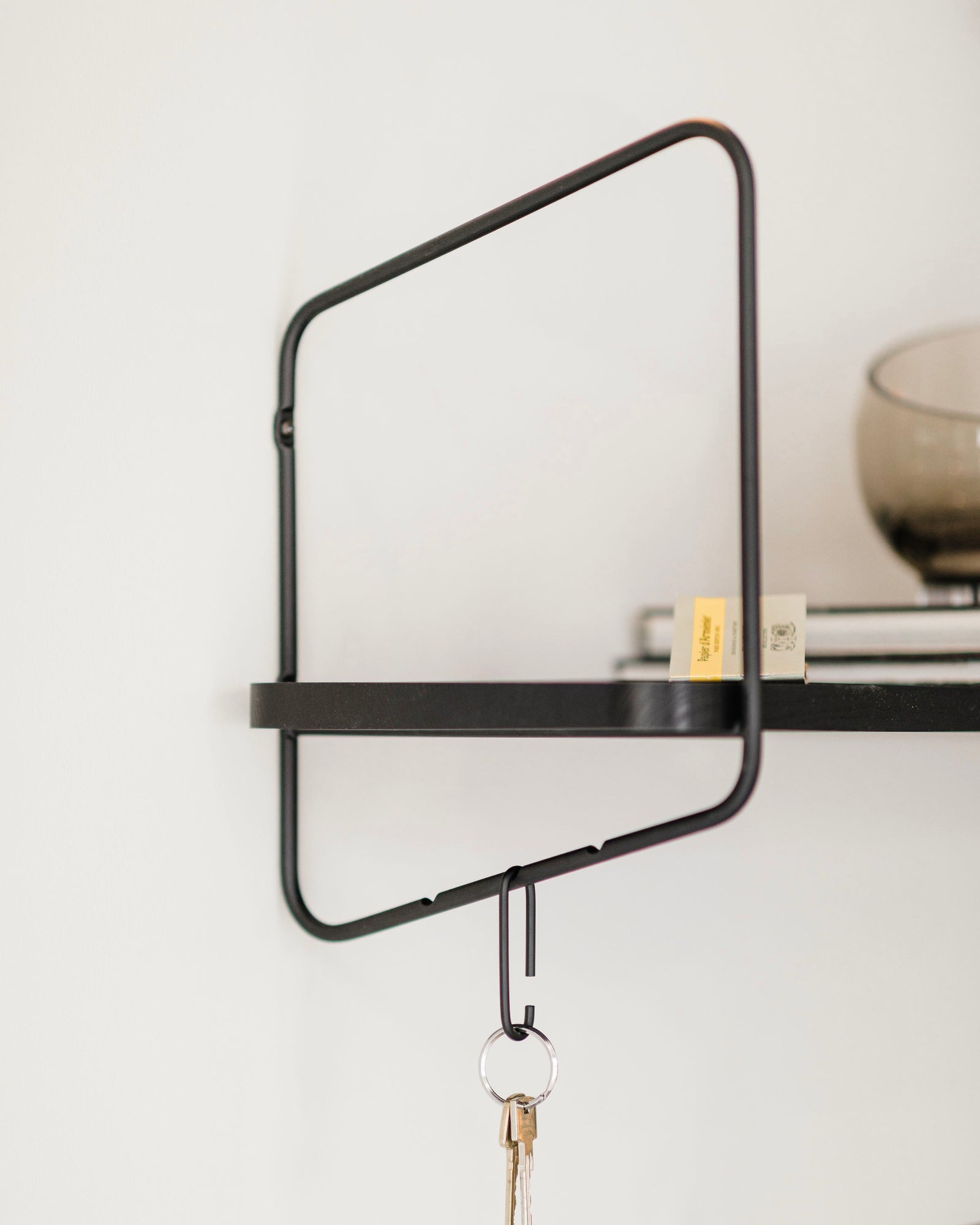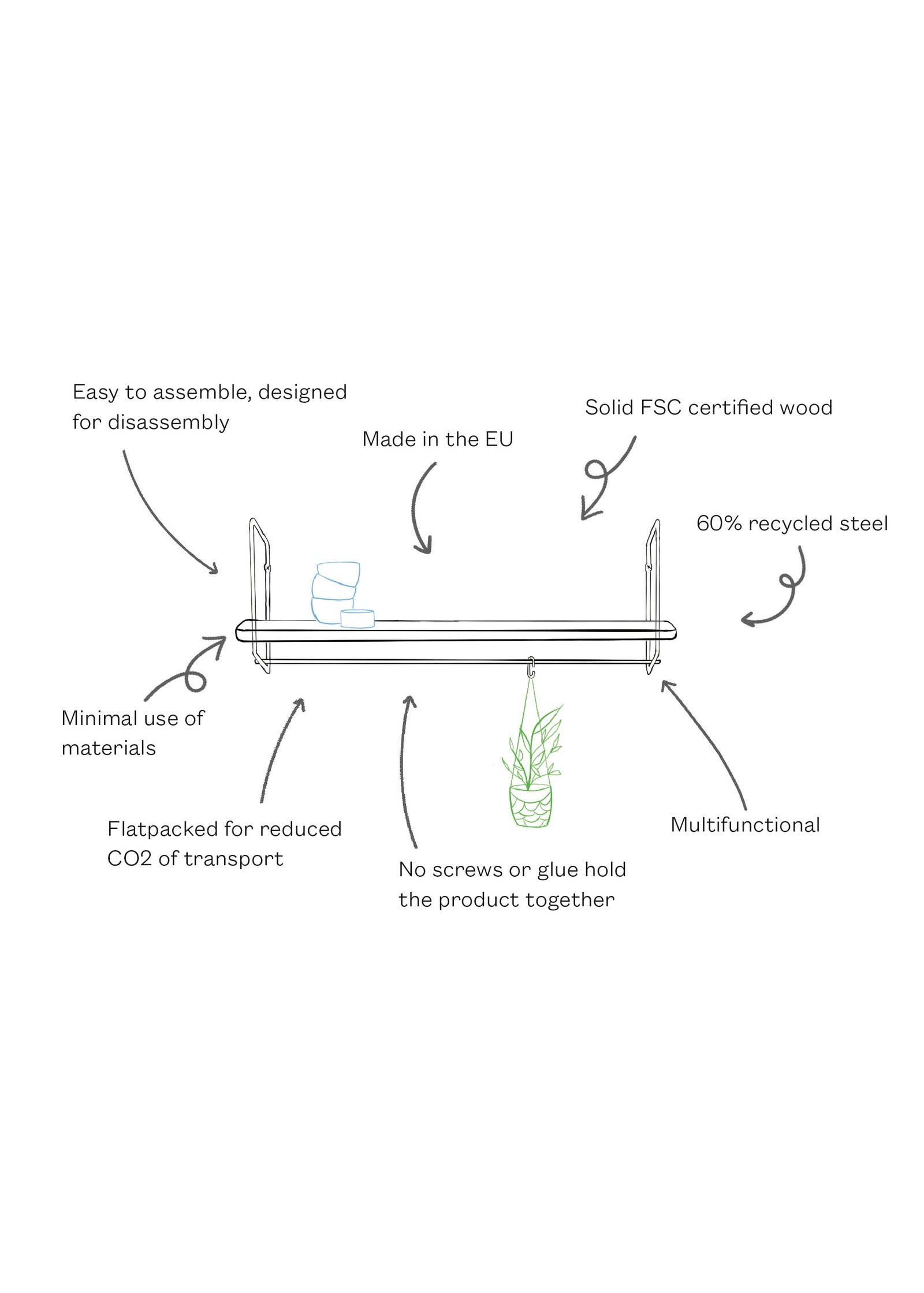 The shelf can be used in any room of the home; the kitchen, the hallway, the the children’s room or the living room. The shelf can carry up to 40 kg even though no glue or screws hold the product together.