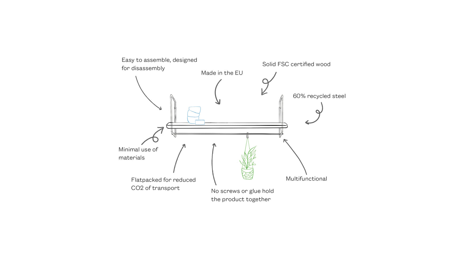 At the end of the product life cycle, the steel can be recycled and the wood can be reused.