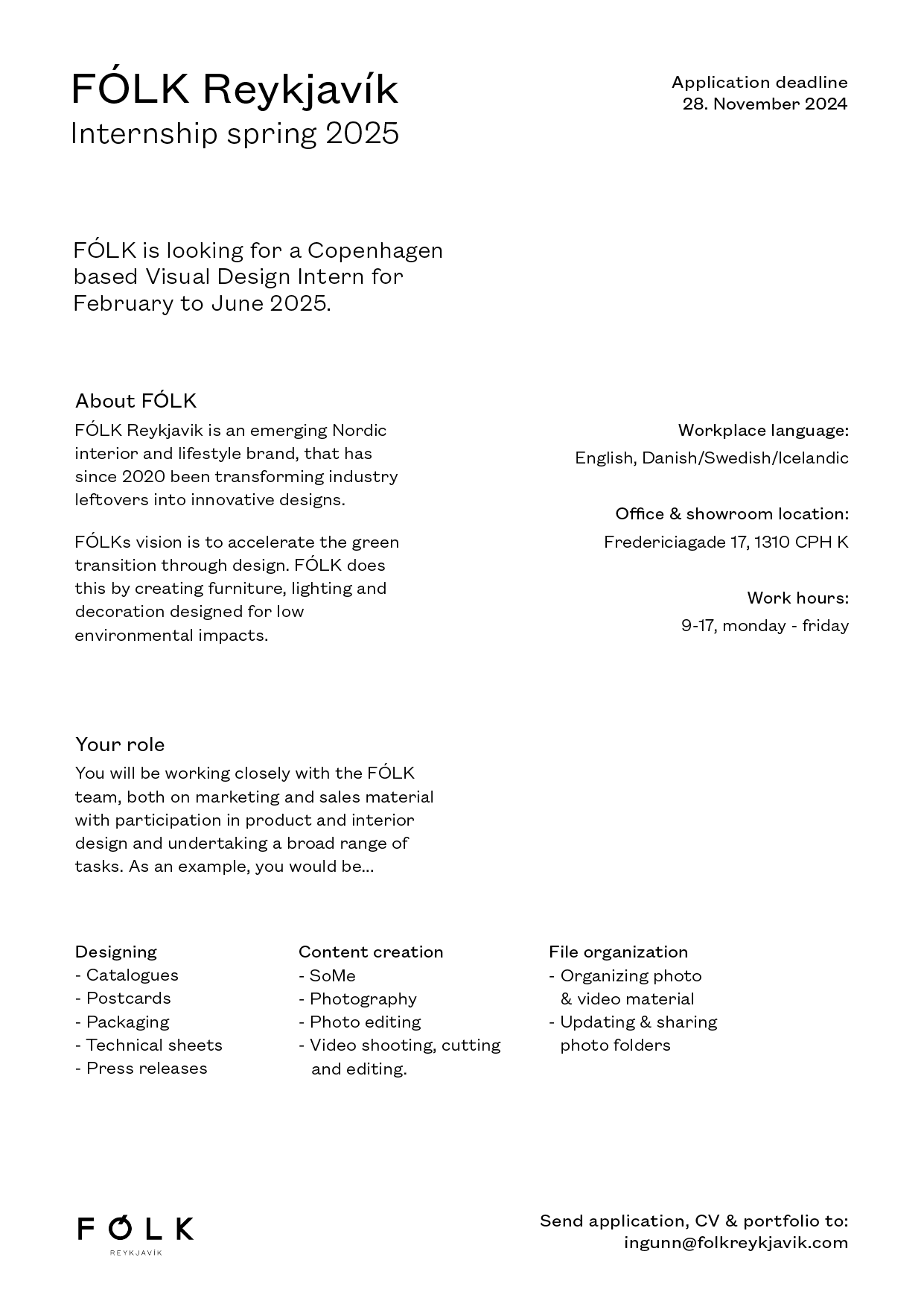 All applicants need to be enrolled in a study program and the internship should provide academic credit or ECTS points. Apply with CV, Portfolio and Cover Letter.
